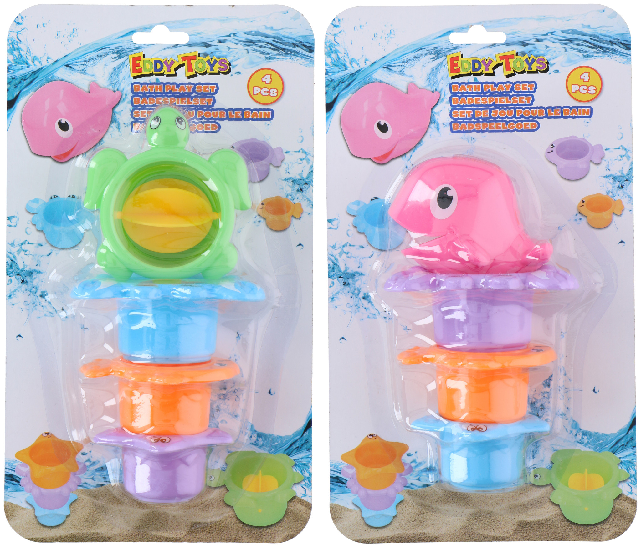 Met deze leuke set zijn ze wel even zoet in bad of bij het zwembad! Stapel de bekertjes en zet het dier bovenop! 4-delig. In diverse uitvoeringen, assorti geleverd.