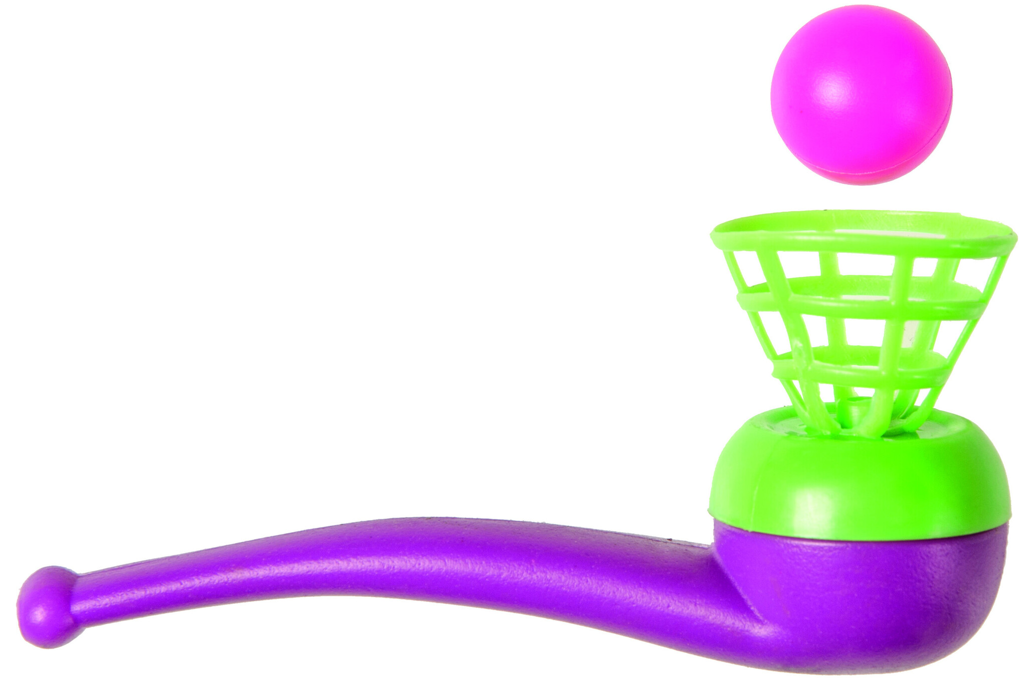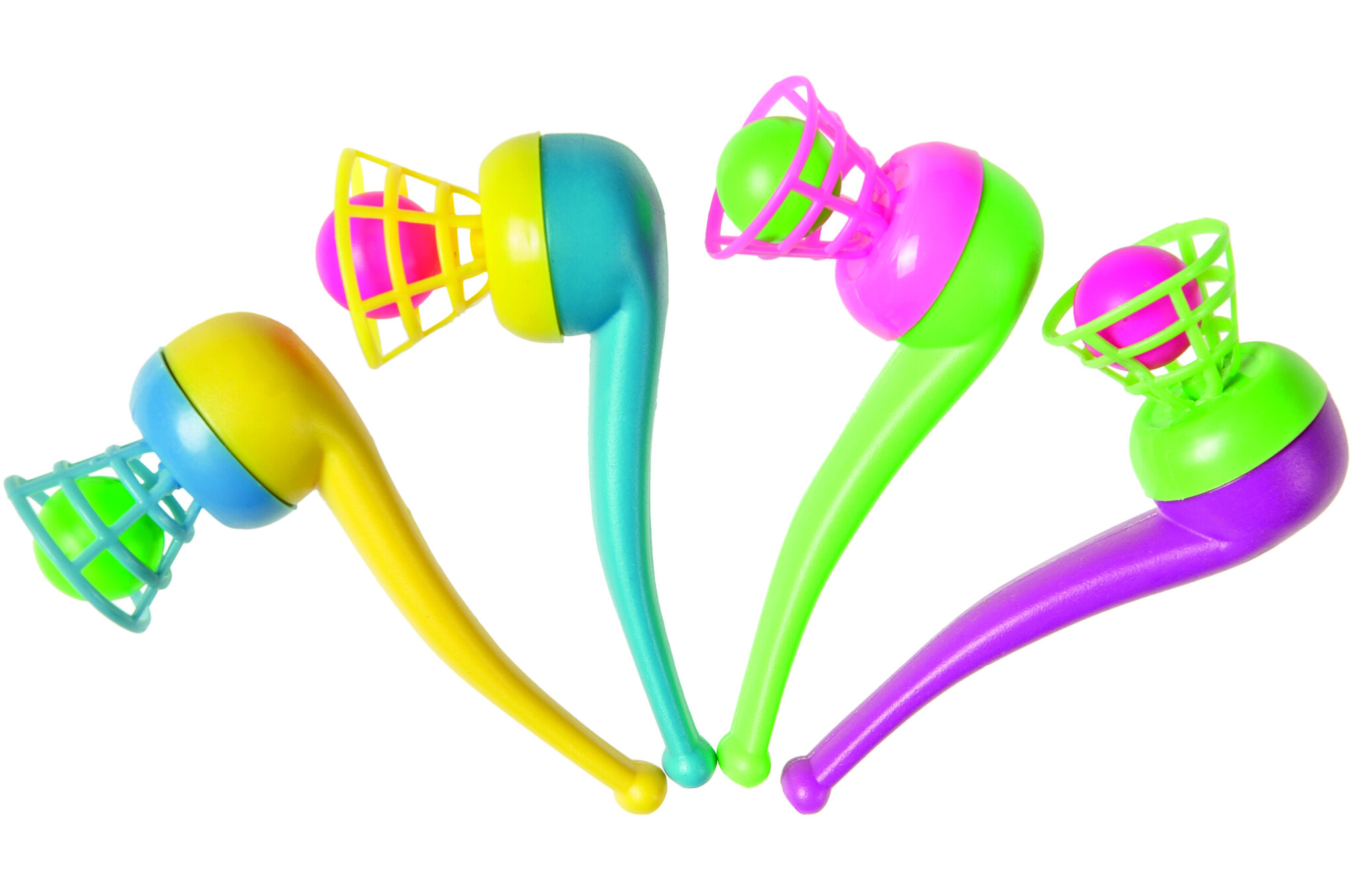 Probeer het balletje omhoog te houden, door te blazen! Blaas je te hard, dan valt het balletje. Oefening baart kunst. Assorti kleuren geleverd. Afmeting ca. 10 cm.