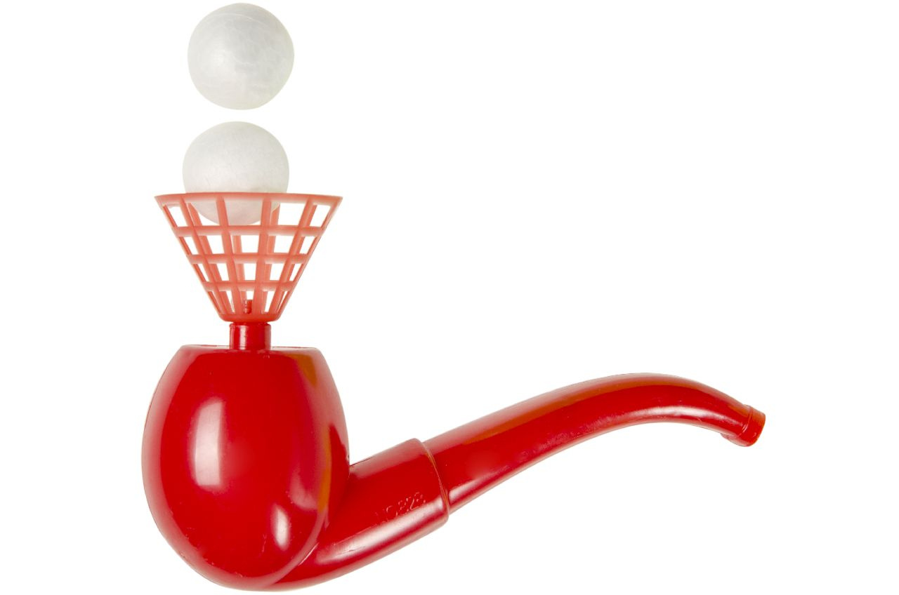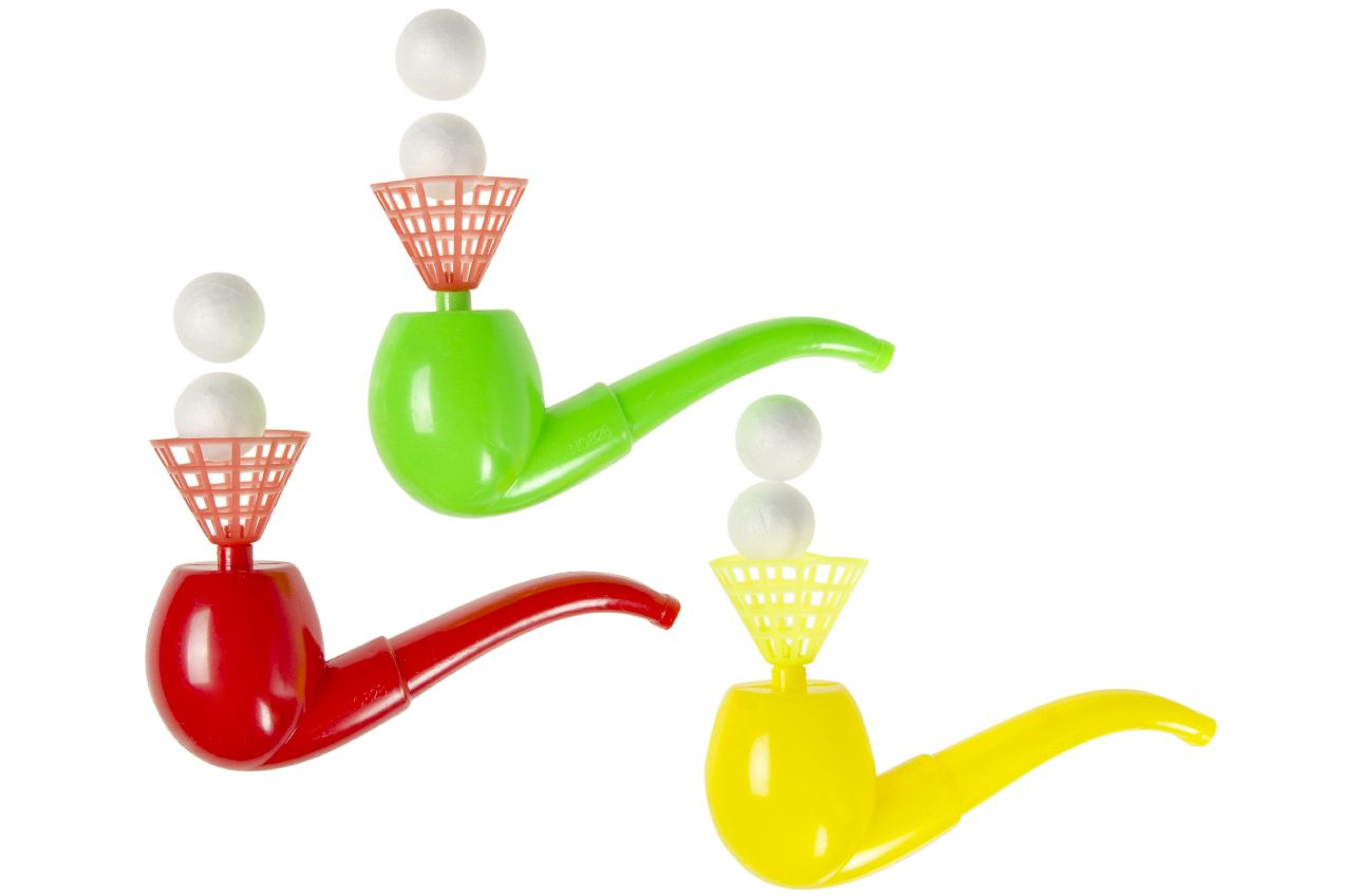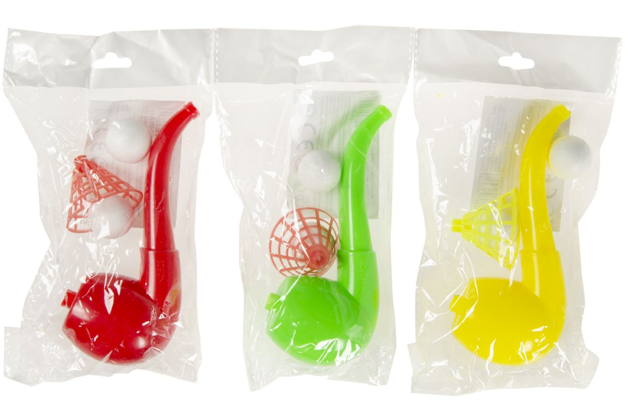 Probeer het balletje omhoog te houden, door te blazen! Blaas je te hard, dan valt het balletje. Oefening baart kunst. Afmeting ca. 14 cm.