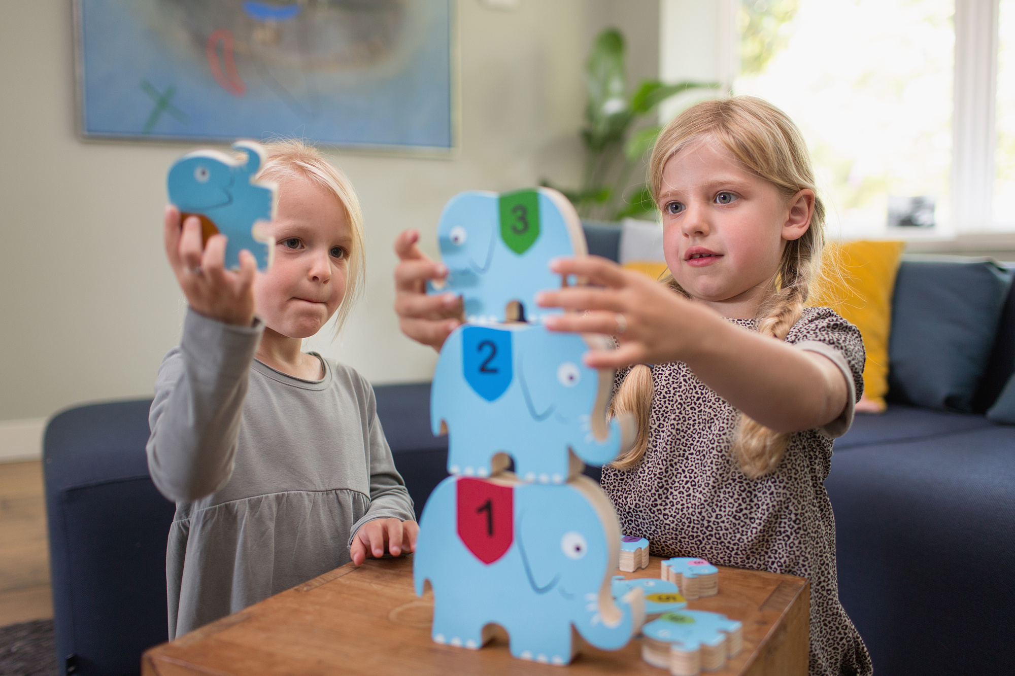 Leer cijfers op volgorde zetten, herken verschillende kleuren en bouw hoge torens met deze vrolijke, robuuste, houten circusolifanten. Welke acrobatische trucjes kun jij uithalen met deze mooie dieren?
