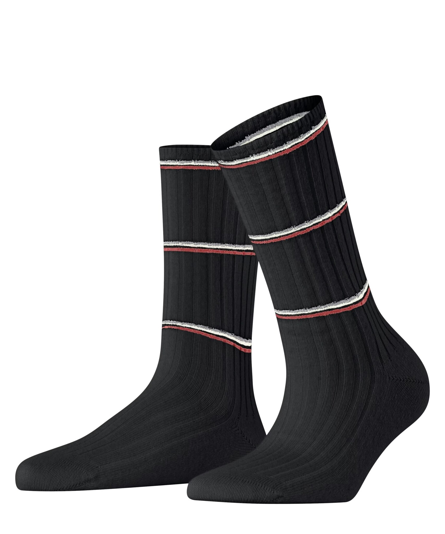 Deze modieuze bootsok voegt een geraffineerde, vrouwelijke touch toe aan het klassieke gestreepte patroon. Het heeft een moderne gestreepte look op de schacht gecombineerd met een elegante geribbelde structuur. Het hoogtepunt van de stijl zijn de glinsterende effecten die worden gecreëerd door lurex in de strepen. Net als de beproefde FALKE Cosy Wool-bootkous garandeert ook dit model een onmiskenbaar gevoel op de huid dankzij het gebruik van duurzame, temperatuurregulerende merinowol en verwarmend kasjmier. De versterkte belastingszones zorgen voor een optimale duurzaamheid en ronden het item af met de perfecte FALKE-pasvorm.