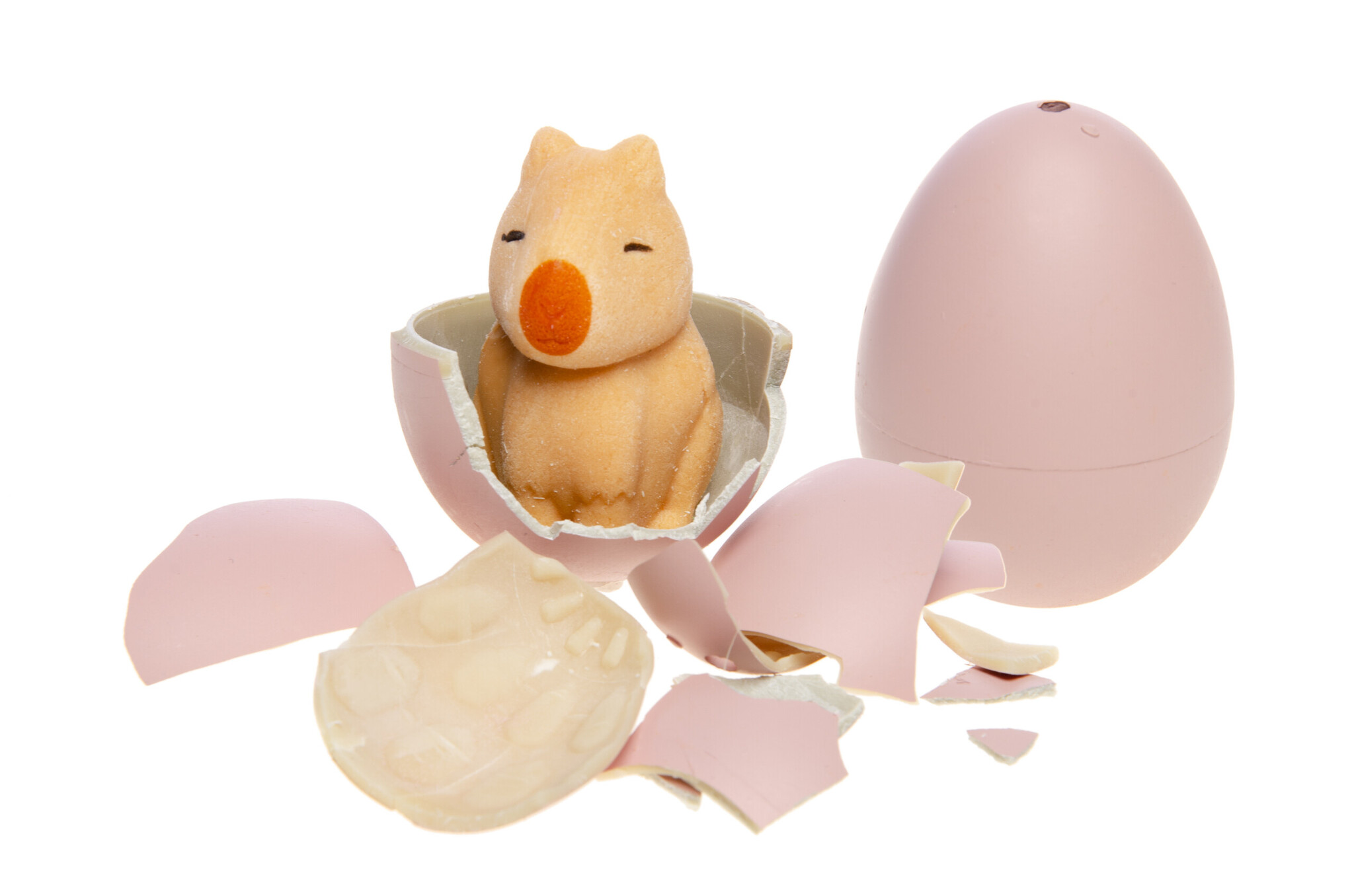 Leg het ei in water en zie een Capibara uit het ei groeien. Elke dag een beetje groter! Afm. ei: 6,75 cm. Geschikt vanaf 3 jaar.