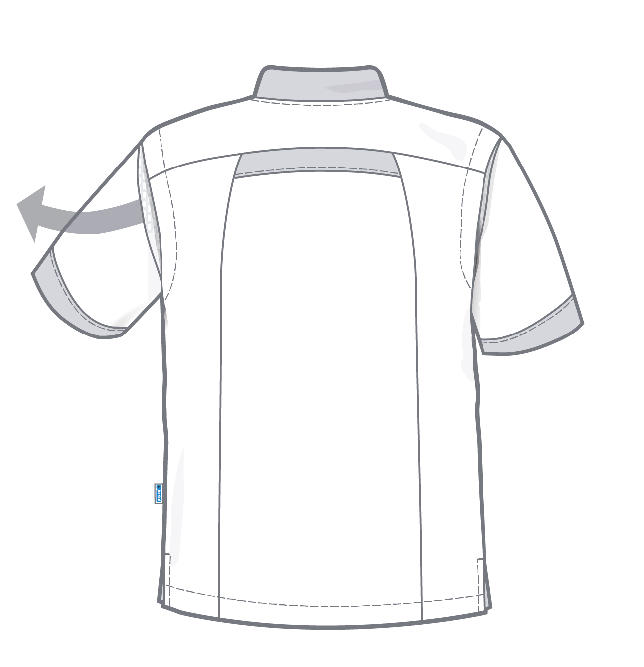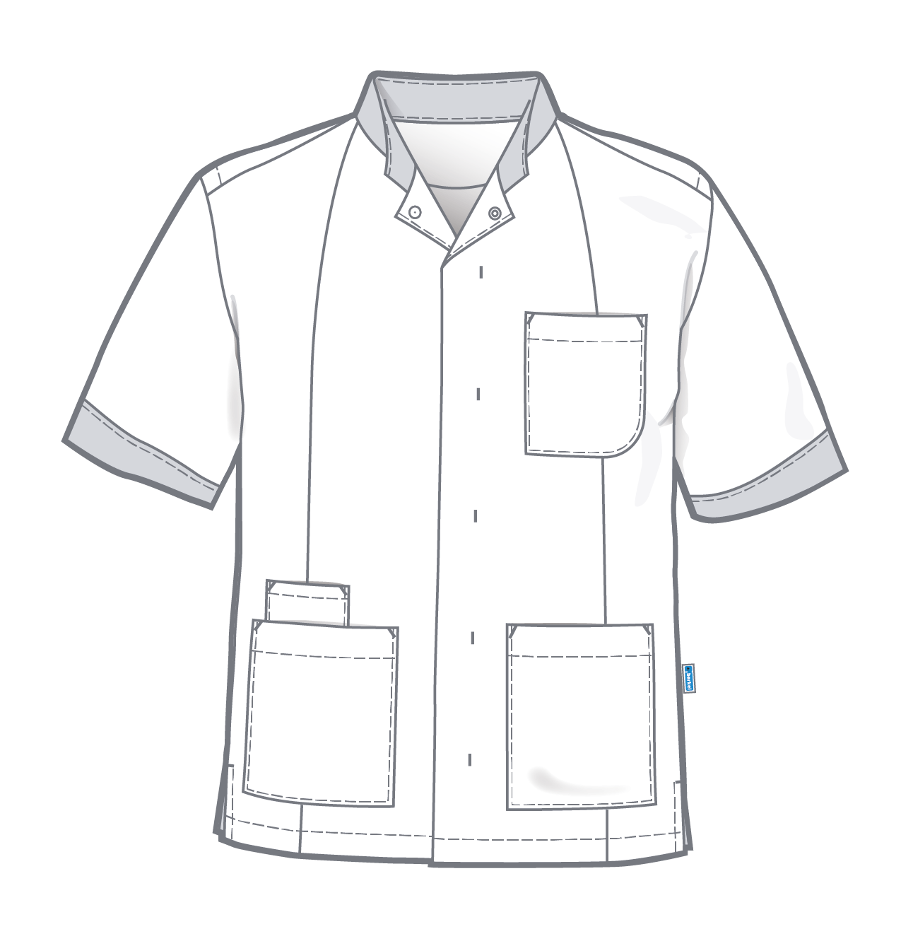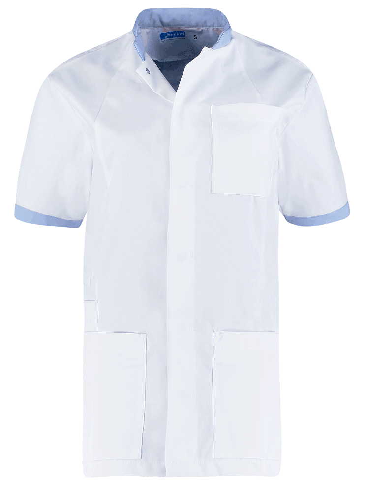 Unisex jas Floris heeft een opstaande boord; verdekte drukknoopsluiting; korte mouwen met stretch inzetstukken voor meer bewegingsvrijheid; 1 borstzak; 2 zijzakken binnen met sleutel-lus, rechts met telefoonzak en zijsplitten.