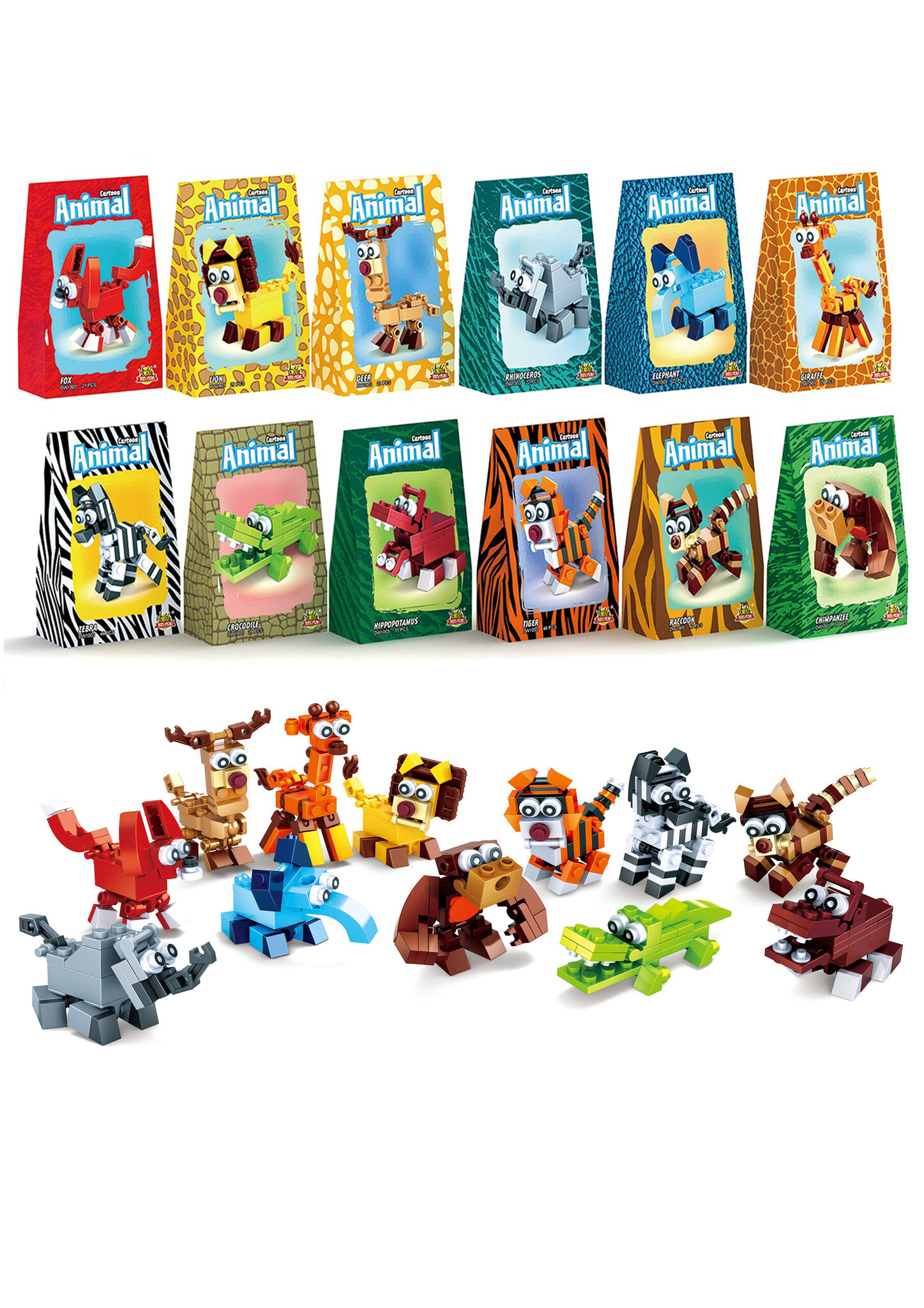 In elk doosje vind je alle onderdelen om zelf een vrolijk jungledier in elkaar te zetten. Wordt het een leeuw, een aap, of misschien een olifant? Afm. verp. ca. 12 x 8 x 4 cm.