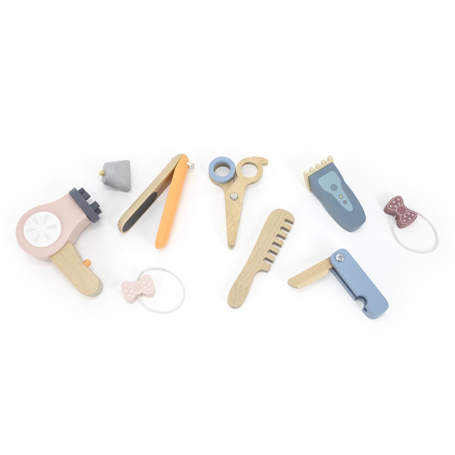 Met deze houten kappersset ( 10- delig) tovert jouw kleine kapper iedereen om in een handomdraai. Perfect voor rollenspel, stimuleert creativiteit én is gemaakt van duurzaam hout.