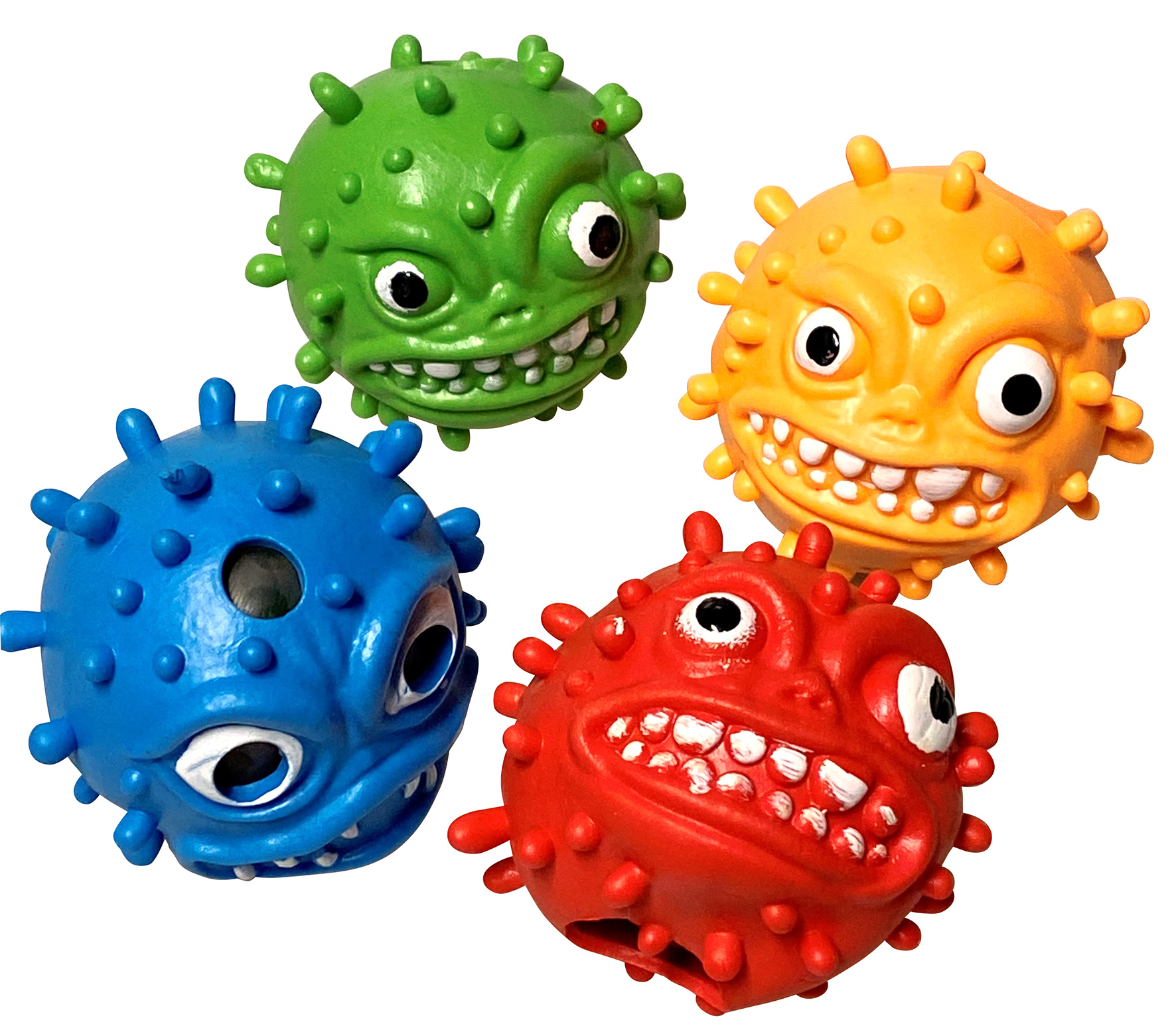 Knijp in het monster en er komen allerlei gekleurde bolletjes tevoorschijn!