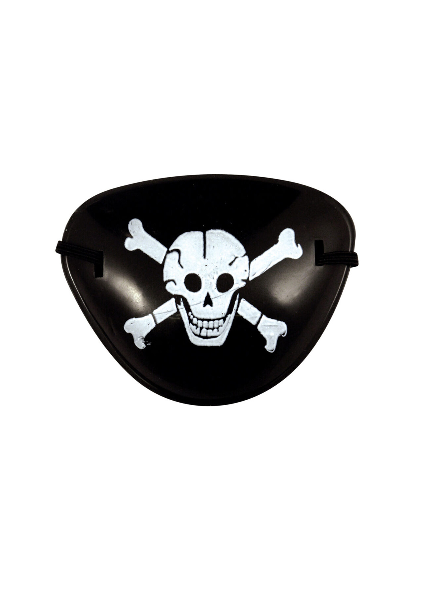 De piraten ooglapjes wordt met een elastisch touwtje om het hoofd gedaan, dus ze passen altijd. Afm. ca. 7,5 x 9 cm groot