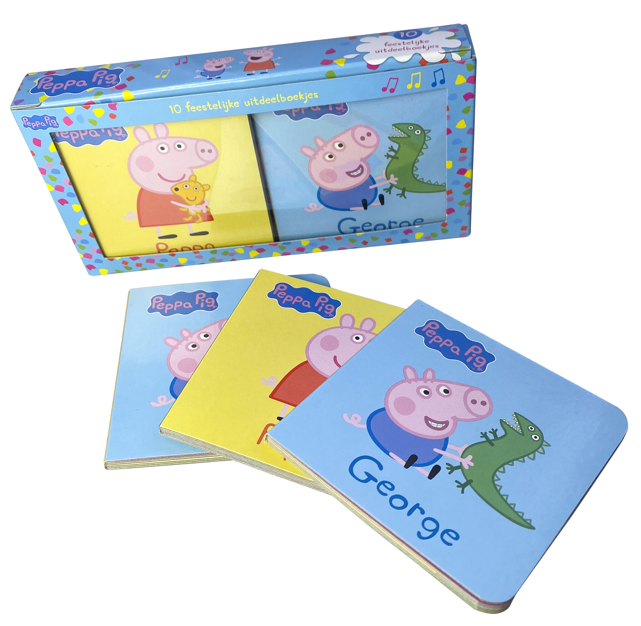 Dit kleine, stevige kartonboekje met leuke verhaaltjes over Peppa en George is ideaal om uit te delen. Leeftijd 2+. Assorti geleverd.