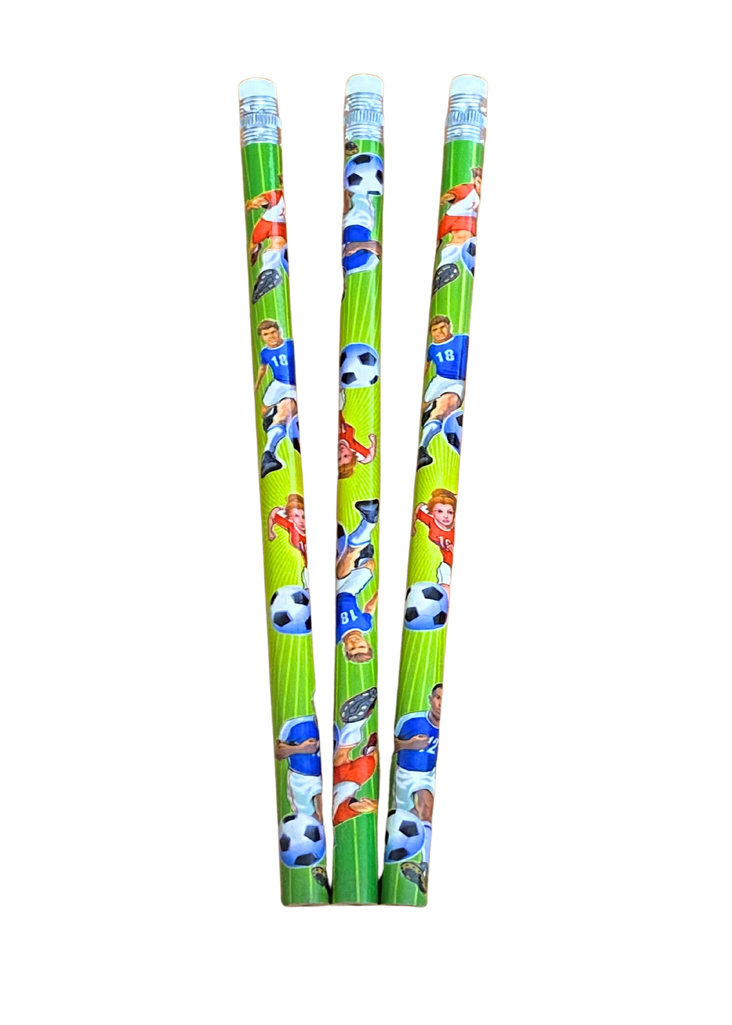 Leuk weggevertje voor sportieve kids. Dit potlood met voetbal dessin heeft ook een handig gummetje om je huiswerk mee te corrigeren!