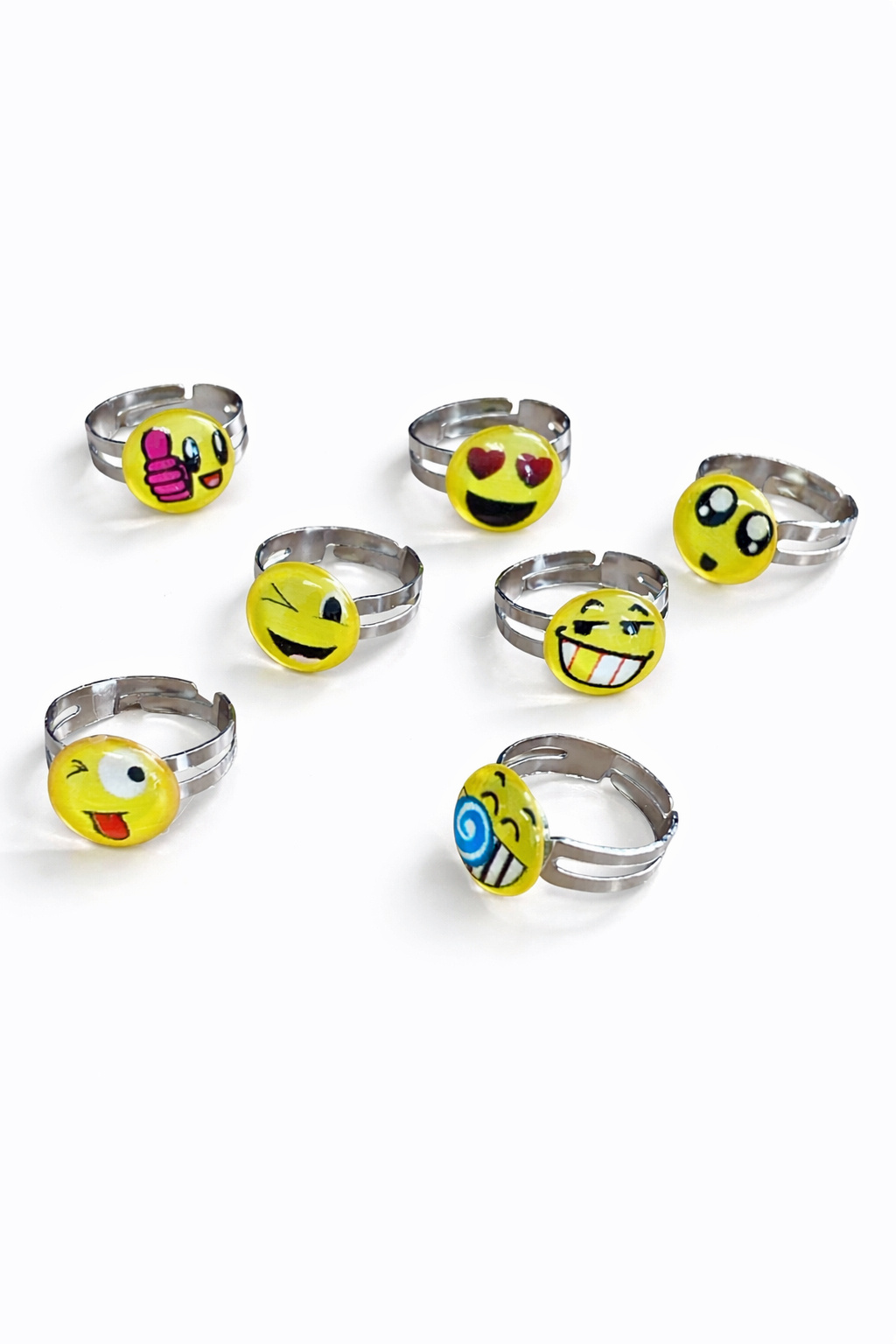 Schattige verstelbare ringetjes met vrolijke emotie-gezichtjes.