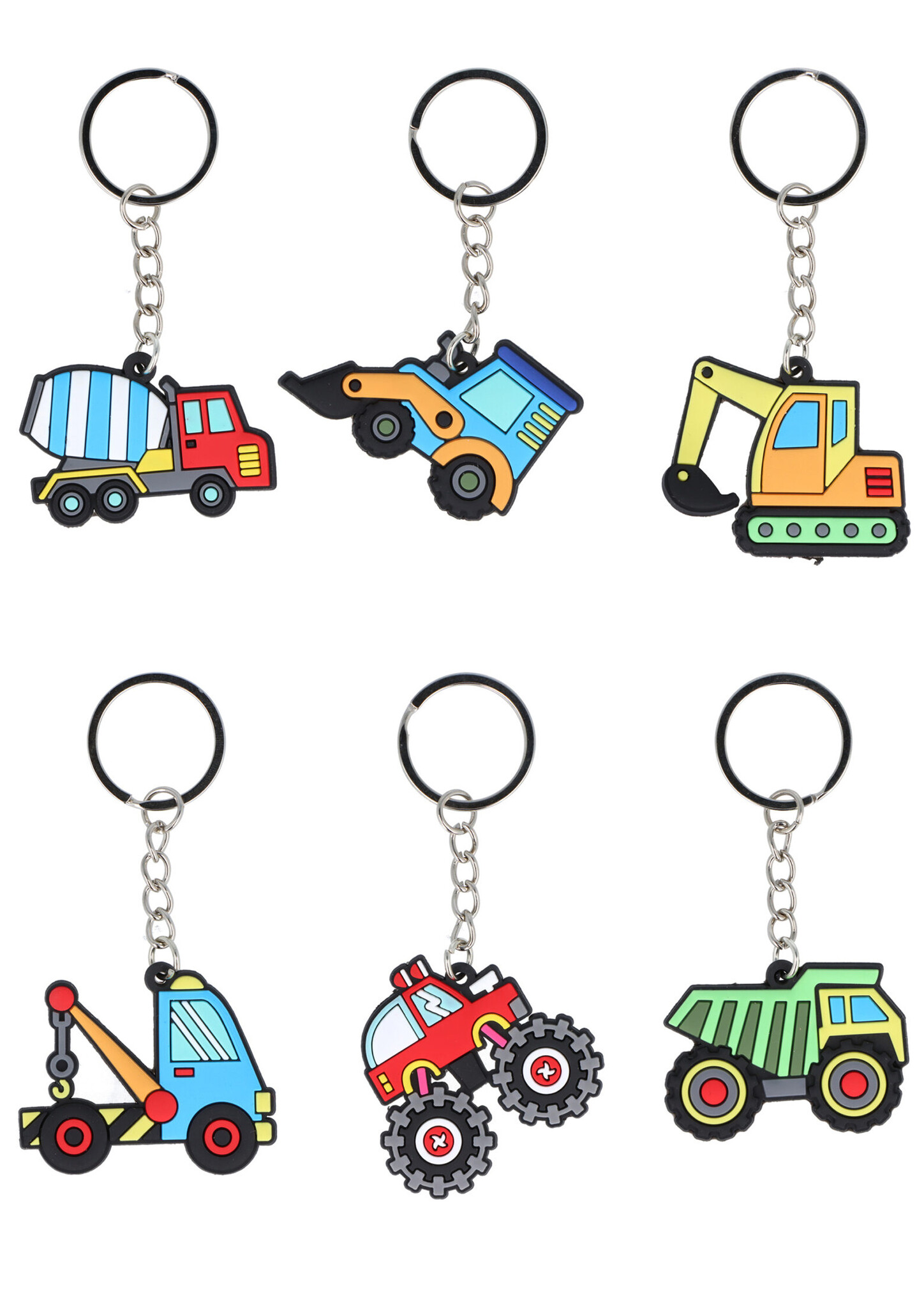 Stoer en stevig! Rubberen sleutelhanger van ca. 5 cm in de vorm van verschillende voertuigen uit het werkverkeer. Assorti geleverd. Leuk voor kleine fans van graafmachines, vrachtwagens en meer!