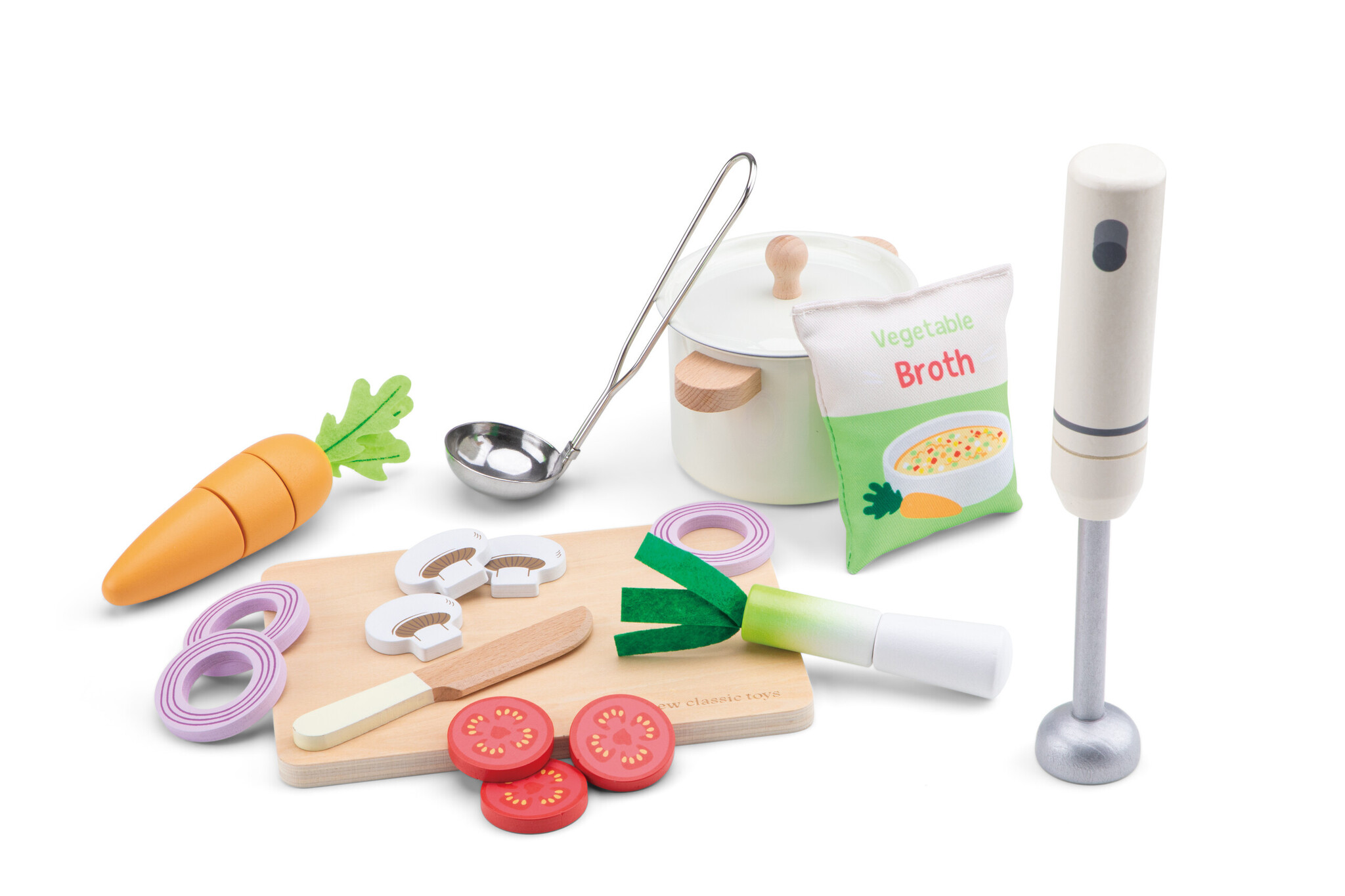 Deze uitgebreide speelset bevat alles wat je als kleine chef kok nodig hebt om de heerlijkste soepen te bereiden! De set bestaat uit veel verschillende onderdelen zoals:
