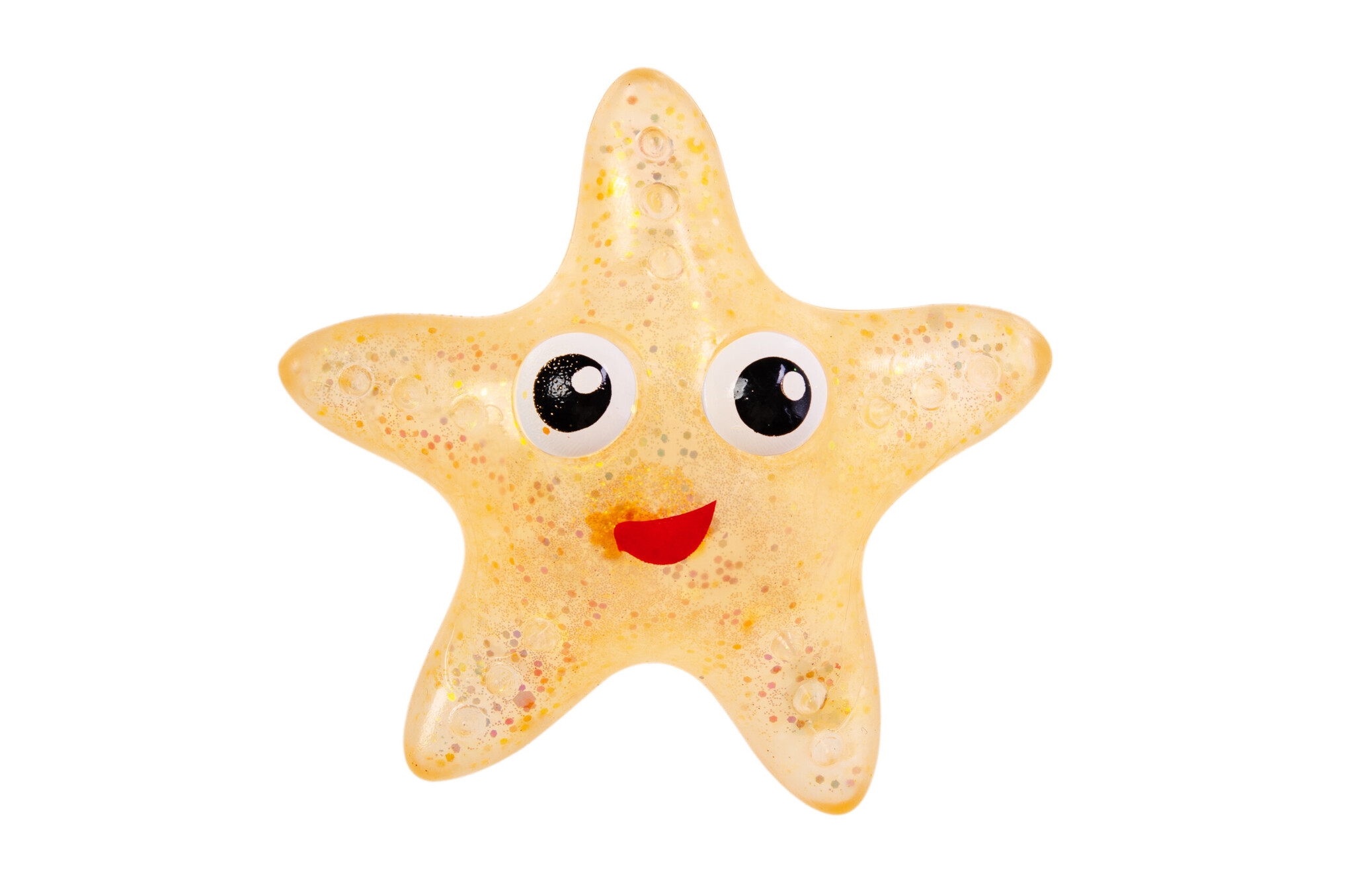 Glanzend, zacht en super knijpbaar! Deze glitter-zeester is dé stressverlager met een vrolijke twist. Assorti kleur geleverd. Afm. 10 x 10 cm. Geschikt vanaf 3 jaar.