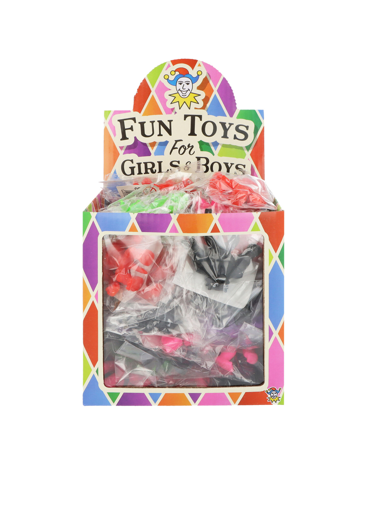 Rek, trek en lach! Grappige monstertjes van ca. 5 cm die je kunt uitrekken en in allerlei bochten wringen. Geleverd in vrolijke, assorti kleuren. Een populair uitdeelcadeautje met gegarandeerd speelplezier!