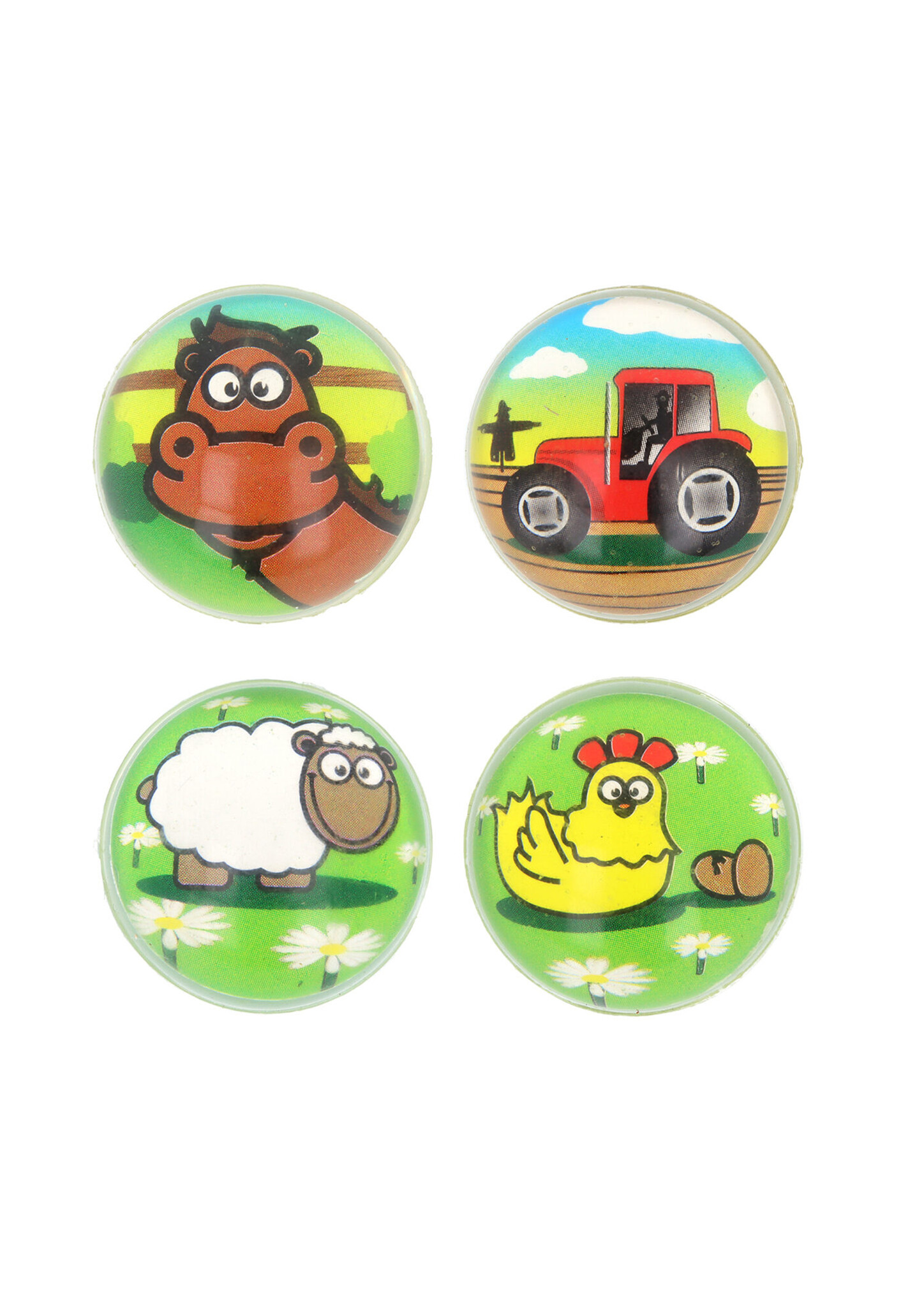 Laat ze stuiteren! Deze boerderij-stuiterballen (Ø ca. 3,3 cm) komen in vrolijke assorti designs. Leuk voor elke dierenfan!