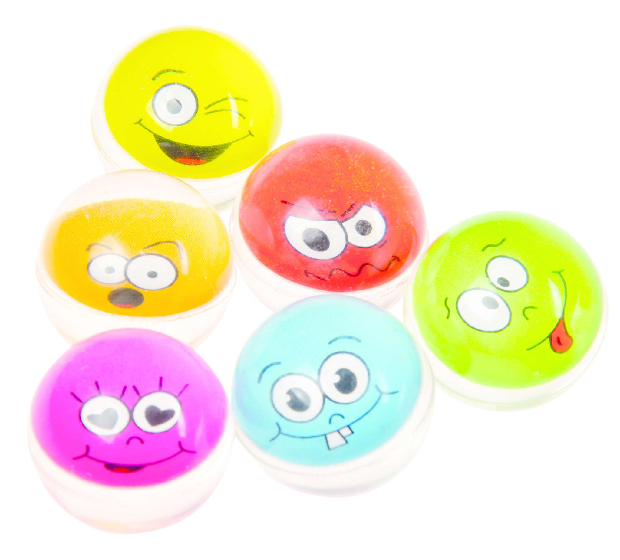 Bounce erop los met deze grappige stuiterballen met gezichten! Assorti kleur geleverd. Doorsnede ca. 32mm.