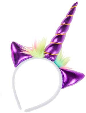 Deze eenhoorn tiara / diadeem wordt geleverd in willekeurige kleuren (roze of paars). De diadeem is in één maat verkrijgbaar, maar rekt wel mee met de omtrek van het hoofd. Geschikt vanaf 3 jaar.