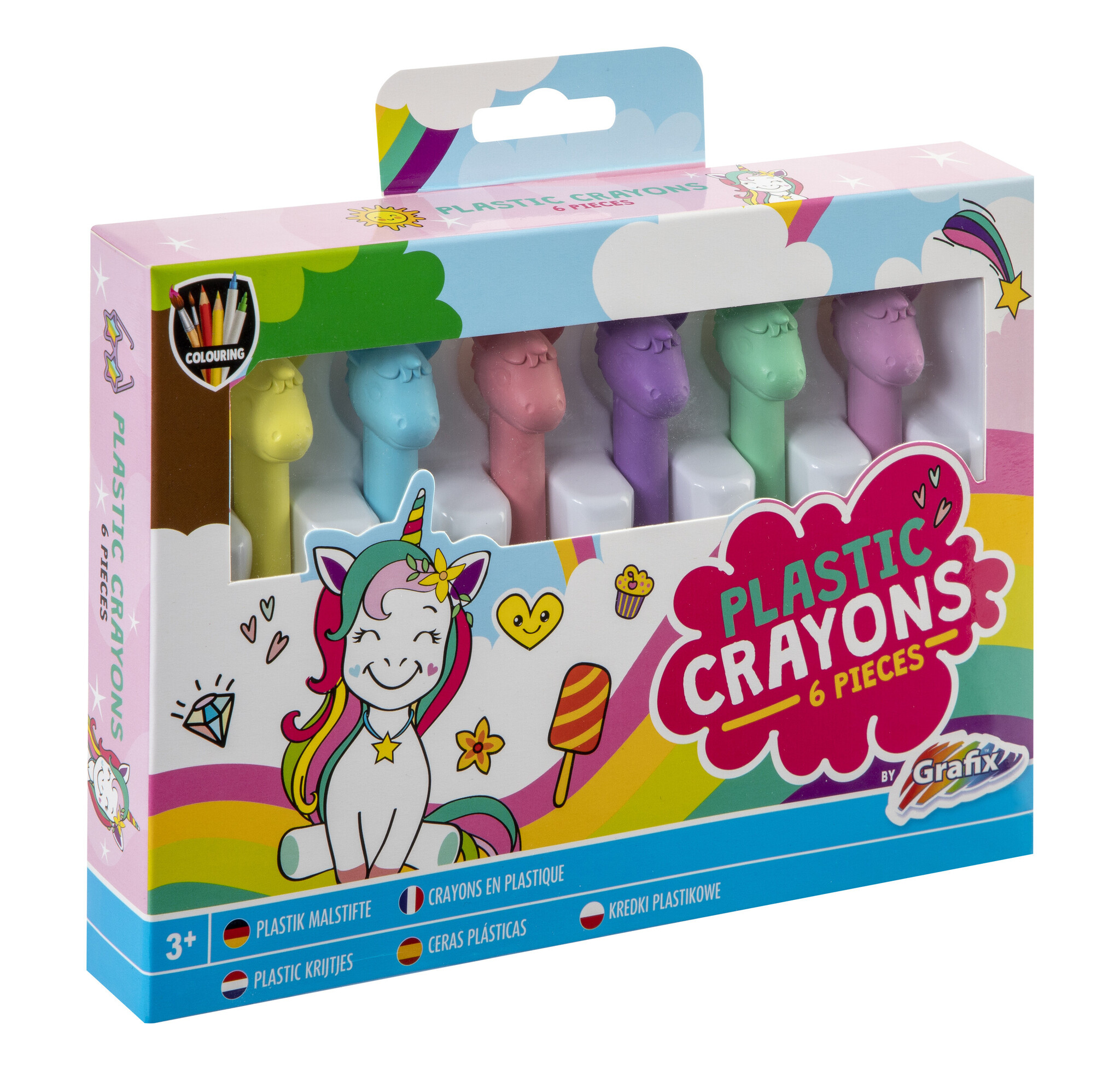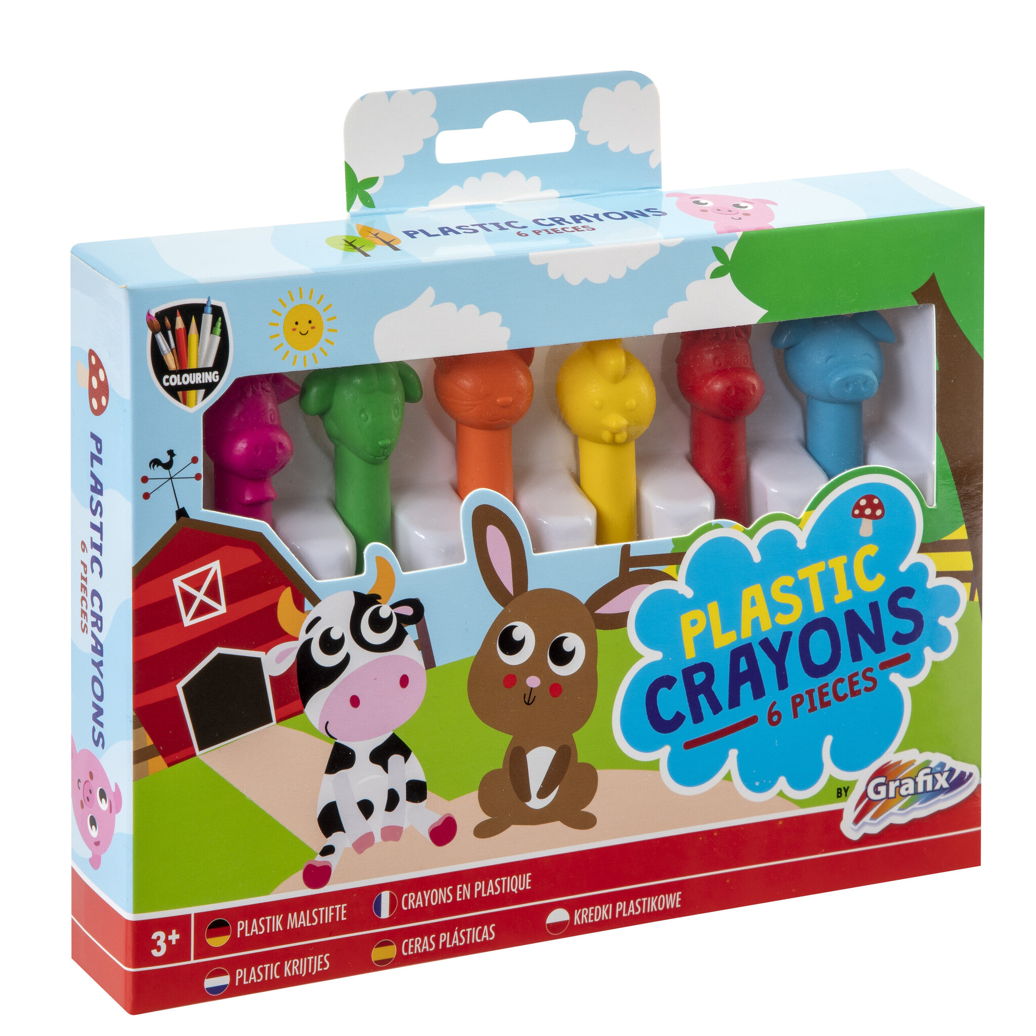 Maak kennis met onze set van 6 waskrijtjes met een speels tintje; elk krijtje heeft een vrolijk dierenhoofdje! In de verpakking zitten 6 verschillende kleurtjes en hoofdjes. Afm. verp. 20 x 14 x 2,5 cm. Geschikt vanaf 3 jaar.